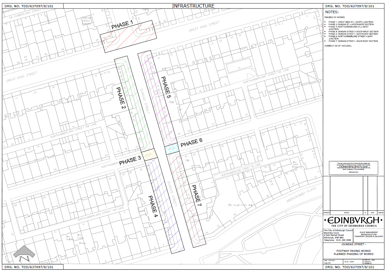 Residents recently received a formal notification from the City of Edinburgh Council [CEC] about pavement upgrading on Dundas Street extending from Great King Street up the main crossroad at Abercromby Place and Heriot Row.